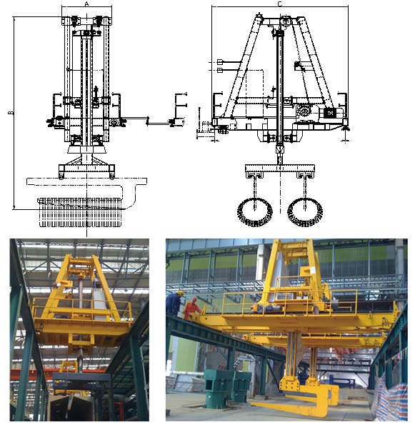 提升运行行车是用来吊运酸洗线或盐浴线线材的专用吊具,通过机架平台上安装的钢丝绳卷筒及行走机构,实现线材运输及上下升降功能。该吊具设备具有灵活可靠、安全耐用、生产效率高等优点。