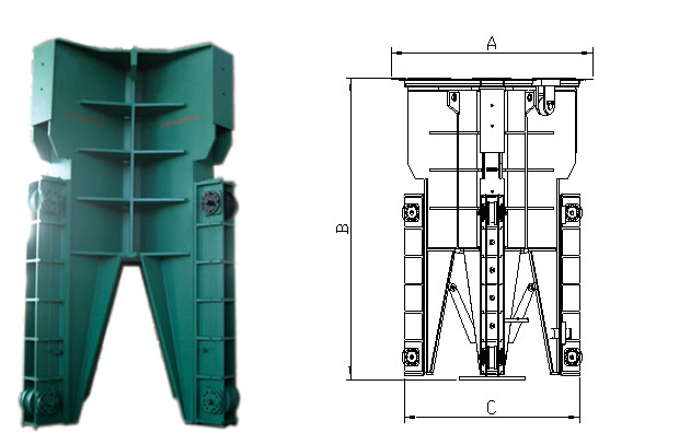 钢包顶升框架是用来升降钢包的专用装置,通过框架内安装的油压缸工作,框架随四侧的导向柱实现钢包上下升降。